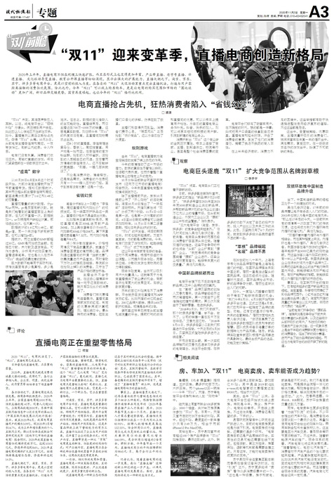 □ 何玺 2020“双11”,电商玩法变了。“双11”,直播电商已成主流。 日渐普及的直播电商,正在重构零售。...