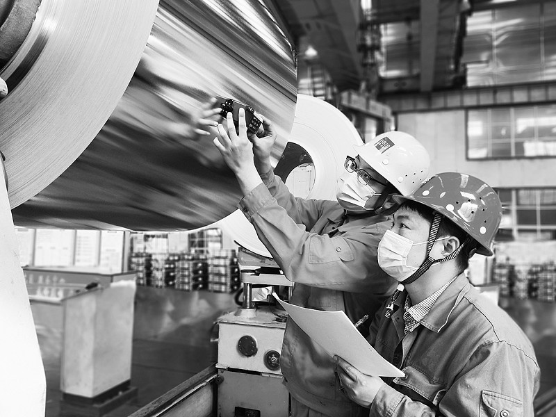 本报讯 (特约记者刘玉红通讯员赵龙坡摄影报道) 河钢衡板事业部以“保重点品种、保高端客户、保效益最大化”的思路积极对接市场,深耕高端客户的个性化需求,通过优化轧制工艺、改进镀锡MSA系统,提升带钢厚度精度和板面光亮度等参数,进而提升产品的增值空间。 图为河钢衡板事业部质检人员正在检测带钢硬度。