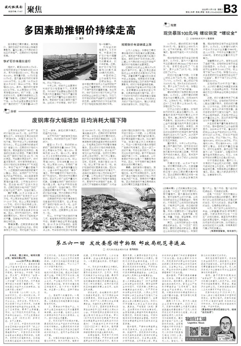 □ 董添 受冬季赶工需求爆发、焦炭提价、废钢及铁矿石成本线上移等因素影响,叠加以唐山为代表的部分地区...