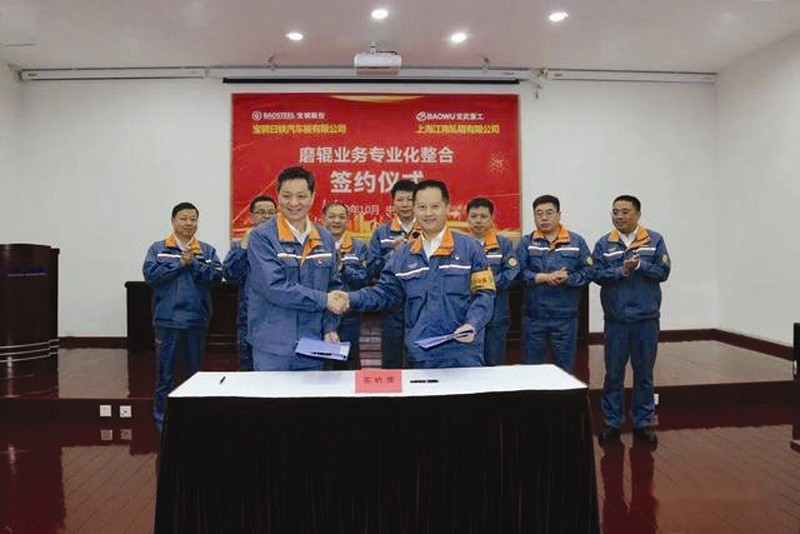 本报讯近日,中国宝武旗下宝钢股份宝日汽车板与宝武重工所属江南轧辊就磨辊业务专业化整合签约,这是宝钢股份设备管理变革首批试点推进项目,也是宝钢股份在专业化整合上首次向合资企业延伸。