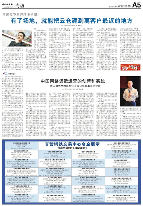□ 现代物流报全媒体记者 常河山 2020年,万淘天下科技有限公司“双11”当天的业务单量30万单。 万淘天...