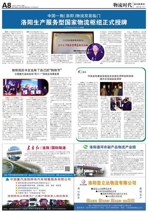 ■ 洛阳生产服务型国家物流枢纽正式授牌