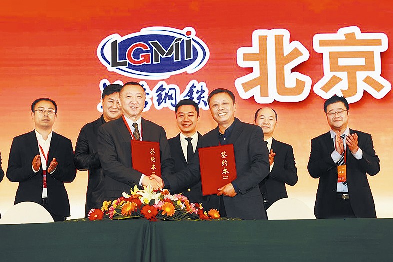 厦门建发钢铁董事长陈月华、五矿电子商务有限公司CEO张烁、南华期货股份有限公司总经理李北新分别与兰格集团董事长刘长庆现场签订了战略合作协议。
