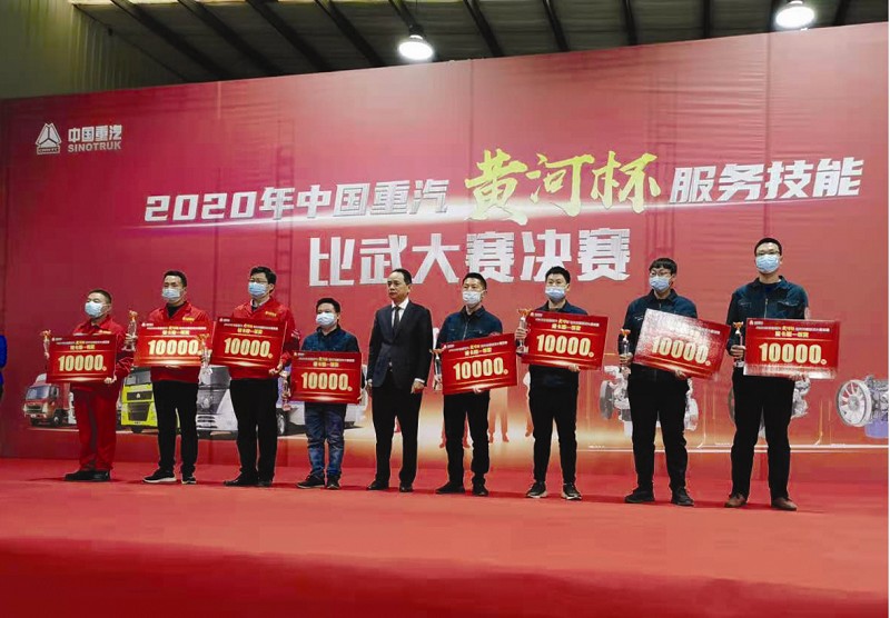 本报讯11月28日,中国重汽“黄河杯”服务技能比武大赛总决赛在济南培训基地落下帷幕。本次大赛历时3个月,共有来自全国各地服务站的1千多位技术精英参加了比赛。历经初选、预赛、决赛三轮激烈角逐,邢台万众服务站的宋雪建、湖南中苍服务站的龚高华、南阳唐龙的方乾等8位选手脱颖而出,夺得决赛一等奖,每人获得1万元的现金奖励,其余选手分别获二、三等奖及荣誉奖奖励。