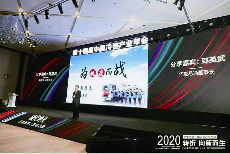 华夏易通董事长郅英武作为嘉宾发言,他讲述了企业抗疫期间感人事迹,让与会者聆听到了来自华夏易通及河南冷链人的声音。
