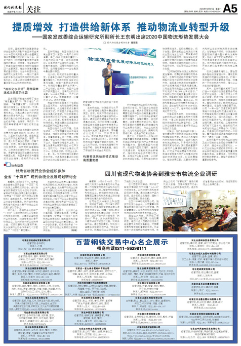 □ 现代物流报全媒体记者 曹朝霞 日前,国家发展和改革委员会综合运输研究所副所长王东明出席2020中国物...