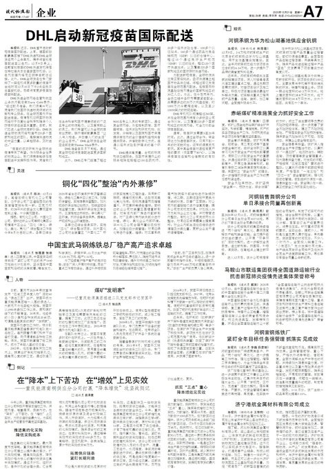 本报讯 (通讯员韩海兵)截至2020年12月11日,河钢销售舞钢分公司单日生效合同102715吨,再次创下单日生效...