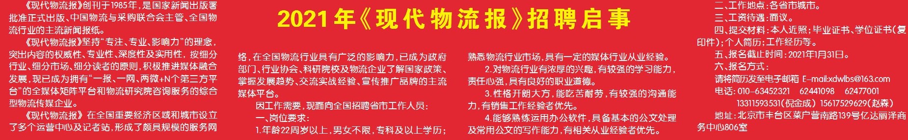 1.年龄22周岁以上,男女不限,专科及以上学历;熟悉物流行业市场,具有一定的媒体行业从业经验。