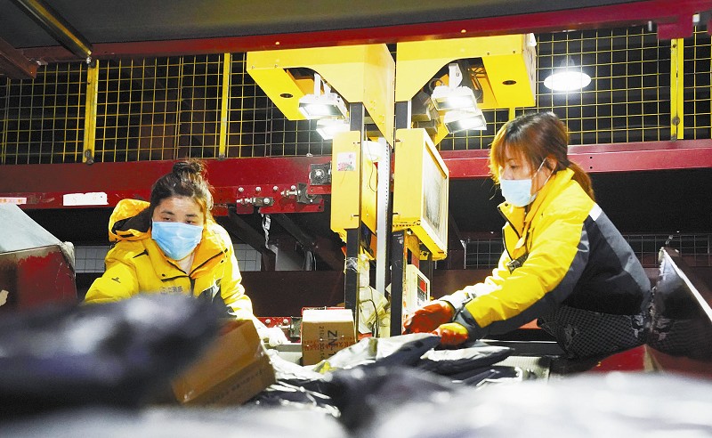 本报讯 春节将至,各电商平台纷纷开启“年货节”促销活动。同时,由于今年多地倡导“就地过年”,使得年货快递量激增。据记者从相关部门了解到的信息,顺丰、韵达、圆通、申通、中通、德邦等多家快递公司均表示,在春节期间将正常运营。 图为韵达快递桐乡分公司分拣员正有条不紊地对快递进行分拣投递。