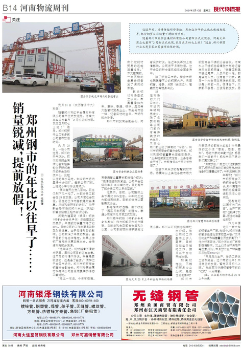 ■ 销量锐减,提前放假!郑州钢市的年比以往早了……