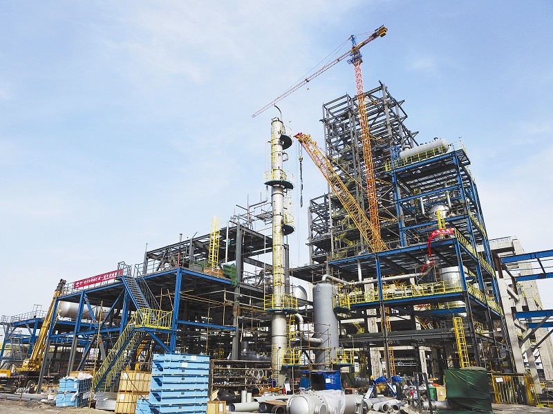 本报讯 日前,安徽淮北矿业集团碳鑫科技公司年产能50万吨甲醇焦炉煤气综合利用项目有序施工中,预计今年9月份完工。项目建成后,将成为淮北矿业集团新的重要经济增长点,对于淮北城市转型升级,实施“中国碳谷·绿金淮北”战略具有重大的意义。 图为碳鑫科技公司年产能50万吨甲醇项目施工现场一角。 (魏玉东)