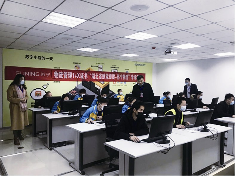 2021年2月6日,物流管理1+X证书湖北省赋能提质苏宁物流专场考试在湖北鄂宁苏宁物流有限公司东西湖物流园培训中心顺利举行。本次考试由北京中物联物流采购培训中心主办,湖北城市建设职业技术学院承办。武汉苏宁物流职能部门、大件仓、菜鸟仓部门经理和业务骨干共38人参加了本次考试。