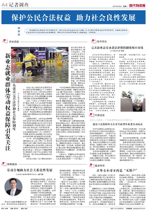 ■ 完善新业态劳动者法律保障制度刻不容缓