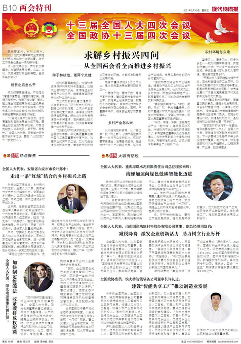 针对水泥行业在节能减排上取得的成效,更好推动水泥行业的绿色发展,全国人大代表,重庆海螺水泥有限责任公...