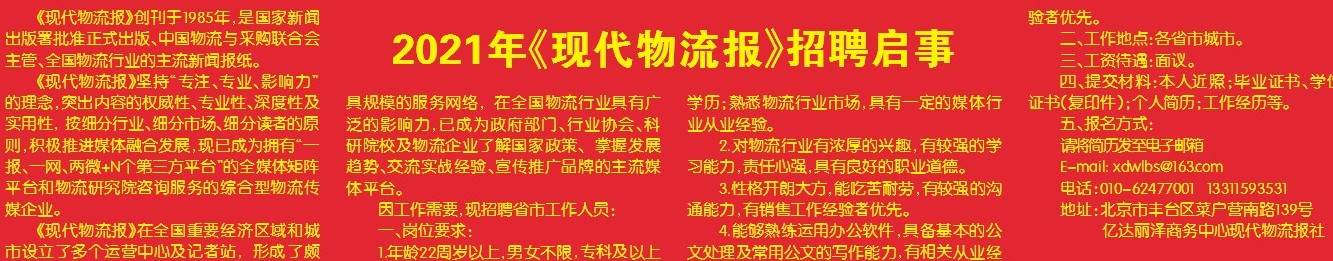 1.年龄22周岁以上,男女不限,专科及以上学历;熟悉物流行业市场,具有一定的媒体行业从业经验。