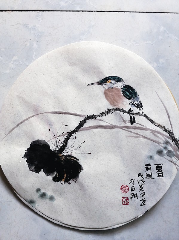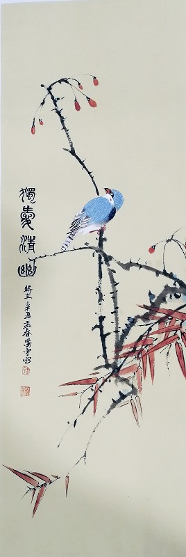 不脱离传统,也不囿于传统。苗宇不断探索、创新用墨、用色,在花鸟画惯见的题材中融入自己的思考,构图新奇而能知黑守白,用色不多而用笔谨慎。在不多的用色中,注重色彩之间的微妙变换,给人以丰富、协调、清雅之感。