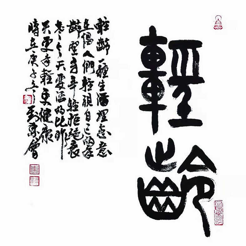 刘东会先生的工作室,室雅人和,古琴在侧,茶香氤氲,南窗墙壁留白,以书法作点缀,篆草隶楷各一幅,相映生辉。