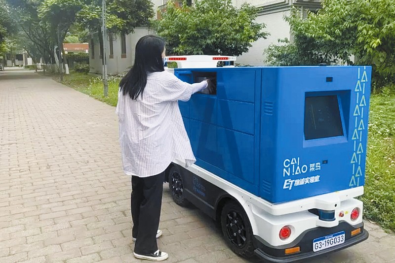 在华中师范大学、中国地质大学和中南财经政法大学等高校的菜鸟驿站,站点内无人取件机、扫码错峰、智能寄件等黑科技为师生带来无感快递。在校园,快递也可以送货上门。这个3月,菜鸟无人车将陆续进驻11城的15所高校,服务可覆盖超过30万学生。学生手机预约后,机器人从出发到送达不超过30分钟。