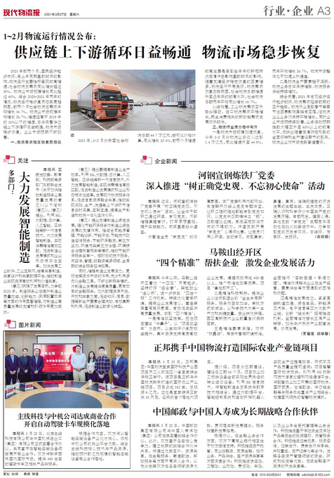 ■ 供应链上下游循环日益畅通 物流市场稳步恢复