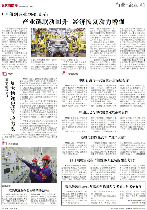 ■ 3月份制造业PMI显示:产业链联动回升 经济恢复动力增强