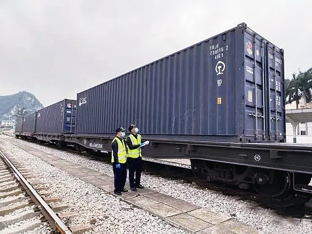 本报讯 4月3日,长沙-河内东盟国际货运班列从广西凭祥铁路口岸出境。这是湖南直达东盟国家的首趟国际货运班列。该趟班列搭载82个标箱,主要装载货物为玻璃瓶、二氧化硅、热轧原钢等,总重量约573.1吨。 东盟班列开通后,湖南至东盟的货物运输时间与过去相比可缩短3天左右,破解了湖南制造业降低物流成本、提升时效等难点问题。