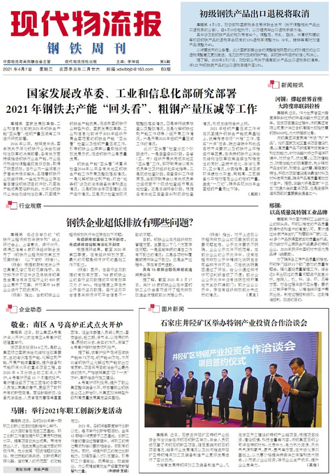 ■ 国家发展改革委、工业和信息化部研究部署2021年钢铁去产能“回头看”、粗钢产量压减等工作