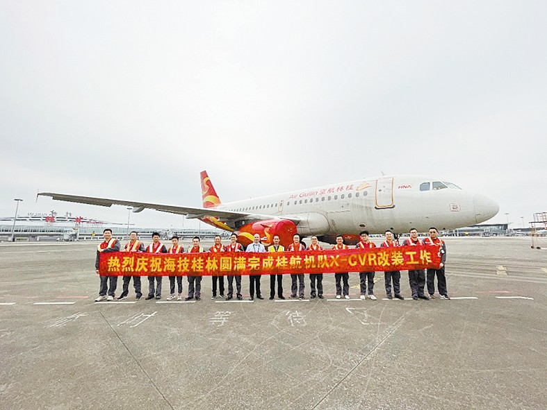 本报讯 近日,桂林航空圆满完成机队11架飞机X-CVR改装工作。在海航技术桂林维修室和桂林航空维修工程部的共同努力下,历时5个多月完成9架在桂飞机的X-CVR改装工作,加上前期已完成改装的2架飞机,桂林航空所有飞机均完成X-CVR改装。海技桂林在无改装经验的前提下,提前准备、仔细钻研,同时聘请海口有经验的人员参与改装,通过多方协调、提前锁定航材以确保改装所需工具和航材顺利保障。桂林航空高效、快速地完成了全机队X-CVR改装工作,不仅为舱音监控提供了技术支持,也提升了海技桂林人员的技能水平,实现了“双向提升”的目的,为安全飞行奠定良好基础。