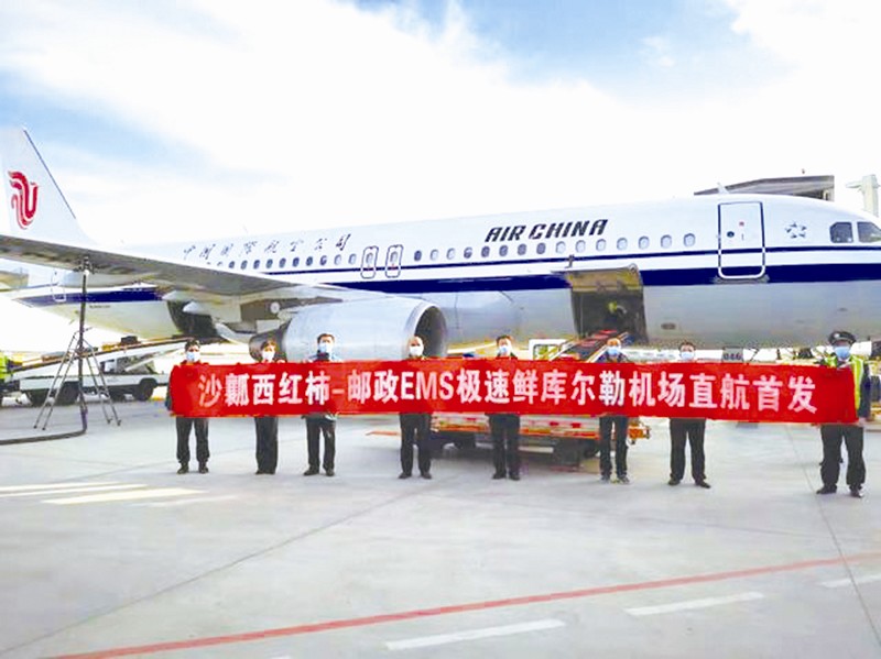 本报讯4月1日,1000件新疆巴州本地沙瓤西红柿以邮件形式搭载着CA1250航班飞往北京首都国际机场,这是邮政EMS极速鲜“番茄号”直航首发,也是2021年巴州农副产品航空货运专班首发。库尔勒机场开通航空货运专班,不仅有效解决了有机沙瓤西红柿快速进入内地高端市场的时效性,还解决了果蔬鲜活性问题,更好地保证了浓郁新鲜的“巴州味道”。