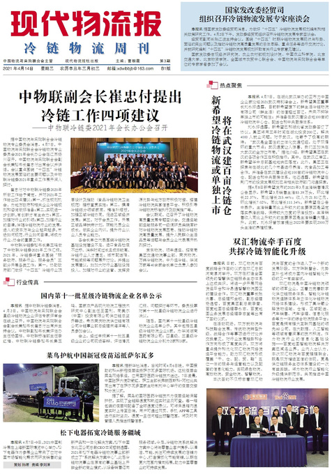 据中国物流与采购联合会冷链物流专业委员会消息,4月7日,中国物流与采购联合会冷链物流专业委员会2021年会...