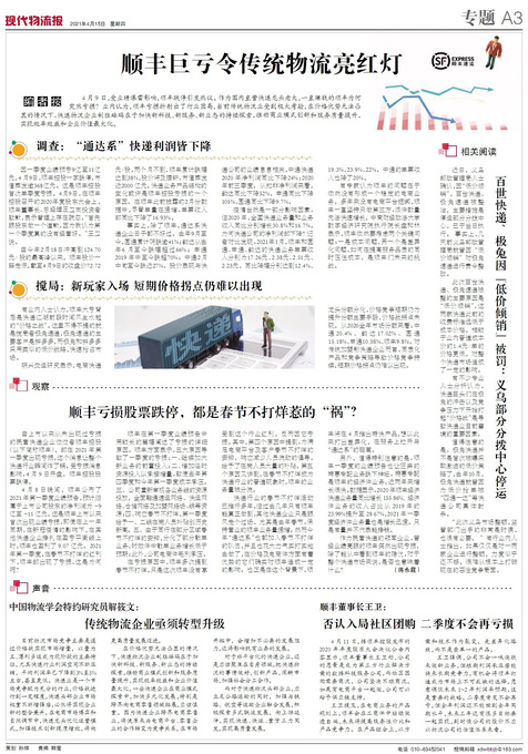 自上市以来从未出现过亏损的民营快递企业佼佼者顺丰控股(以下简称顺丰),却在2021年第一季度出现亏损,这...
