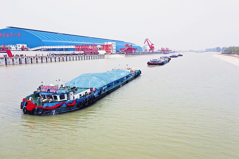 本报讯 近日,记者在济宁能源发展集团旗下的梁山港码头作业区看到,一艘标注“绿动8016”的济宁港航发展集团LNG绿色动力船正在梁山港码头装煤。这意味着梁山港认真践行“打造智慧智能、森林绿色、安全高效港口”的发展理念,在去年8月启用108辆LNG国六新能源汽车拉煤的基础上,又开启了LNG绿色动力船运输煤炭的模式。 (王传钧)