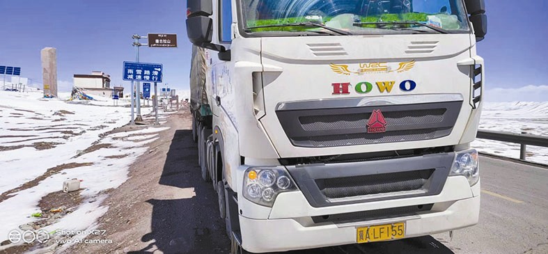 图为岳师傅的豪沃T7H/540经过唐古拉山