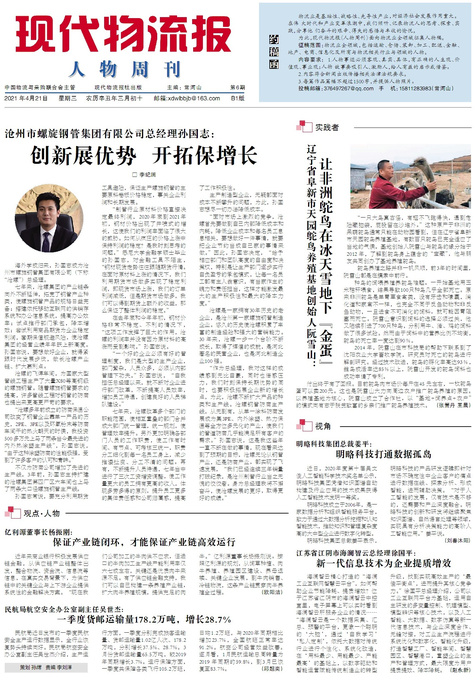 □李纪澜 海外学成归来,孙国志成为沧州市螺旋钢管集团有限公司(下称“沧螺”)总经理。 七年来,沧螺...