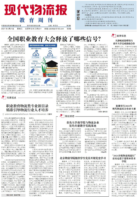 本报讯全国职业教育大会近日在京落下帷幕,职业教育发展迎来又一个春天。中国物流与采购联合副会长、全国物...