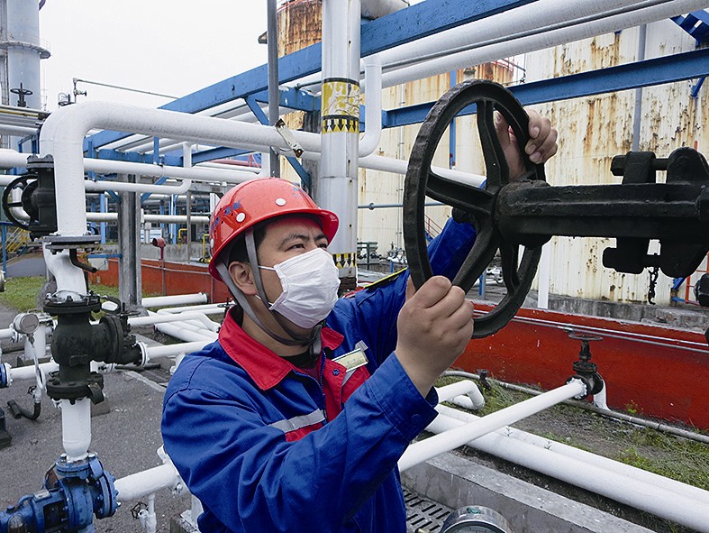 本报讯今年以来,安徽淮北矿业集团临涣焦化公司不断优化生产工艺、严格控制生产工艺指标、加强设备巡检和维护保养、加大巡检力度等,多措并举,有效提高了产品产量和质量,为市场提供优质焦炭、甲醇、煤焦油等各类产品,保证了市场供应。 图为该公司员工正在精心操作生产工艺阀门。(魏玉东摄影报道)
