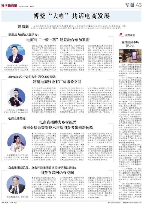 编者按 当前,电商经济已成为全球数字经济发展的重要趋势之一。在刚刚结束的博鳌亚洲论坛多场分论坛中,...