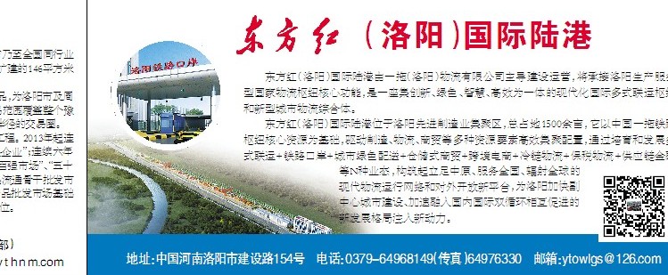 东方红(洛阳)国际陆港由一拖(洛阳)物流有限公司主导建设运营,将承接洛阳生产服务型国家物流枢纽核心功能,是一座集创新、绿色、智慧、高效为一体的现代化国际多式联运枢纽和新型城市物流综合体。