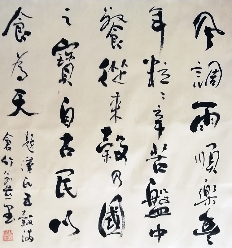 竹元先生出生于河北封龙山下的一个小村庄,受祖庭影响,自幼爱好诗文书画。多少年来临池不辍,潜心摸索。秃笔数百,废纸三千可为其证。行书试图将颜鲁公的气度、米南宫的率直、黄山谷的跌宕、何绍基的洒脱融为一体,开拓自家风范。篆书和篆刻学齐白石,以本地《祀三公山碑》为基,着意取其遒厚纯朴的笔意,天趣自成的章法和浑穆苍一茫的气势。自以为与《祀三公山碑》有缘,曾多次拜于此碑前,手摸其字,心会其意,留恋忘返。