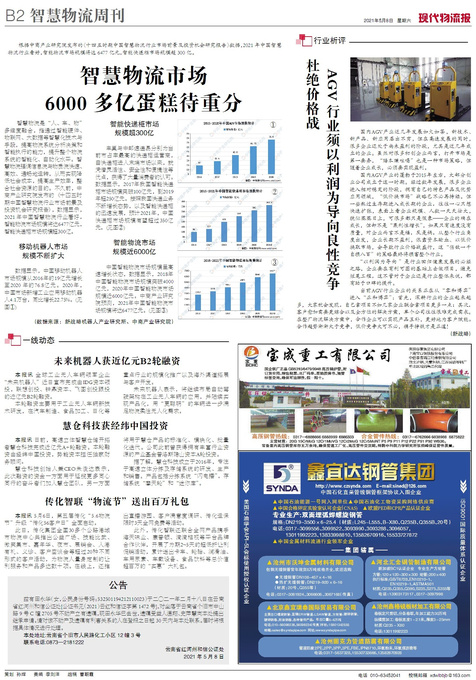 根据中商产业研究院发布的《十四五时期中国智慧物流行业市场前景及投资机会研究报告》数据,2021年中国智慧...