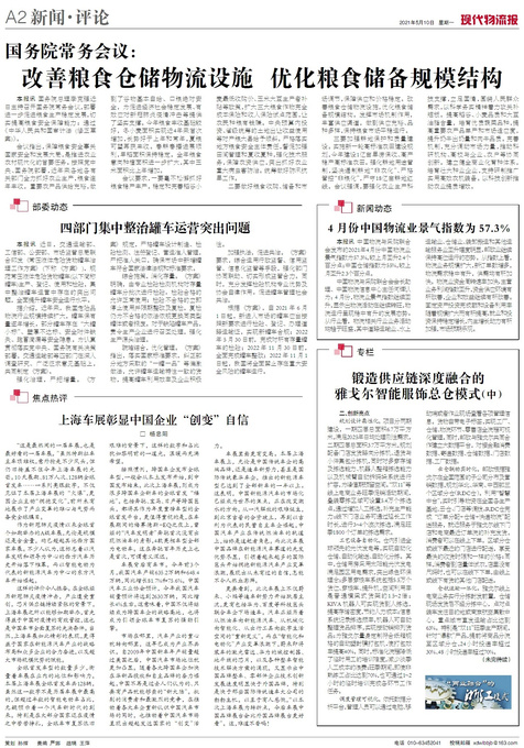 本报讯中国物流与采购联合会发布的2021年4月份中国物流业景气指数为57.3%,较上月回升2.4个百分点;中国仓...