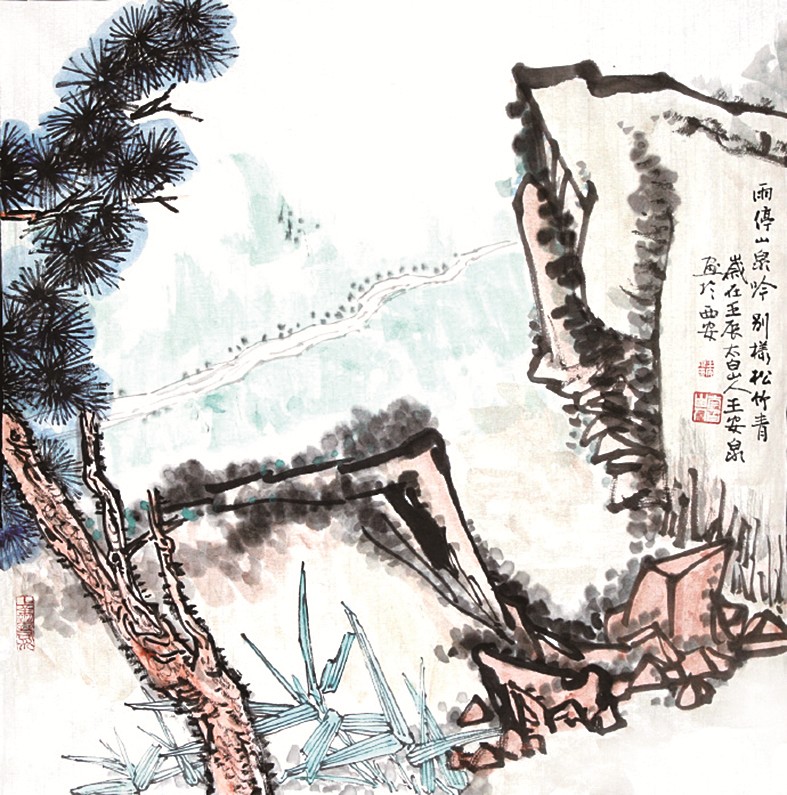 许多作家称赞他是画家中的作家,许多画家称赞他是作家中的画家。看他的画如读他的文章,读他的文章如看他的画。这也符合王安泉的艺术修为和创作高度。他的画作简练高古,千里江山收诸寸纸,抑且设色妍丽,情态愈老愈柔媚。岚光波影中,有昼晦阴晴的幻变存乎其间;或则拂晓横江,水香袭人,天色大明而红日犹未高悬;或则薄暮登临,晚霞残照,反映于藤蔓衰草之间;或则骤雨初歇,阴云未敛,苍翠欲滴,衣袂犹湿,变化万端,目眩神迷。