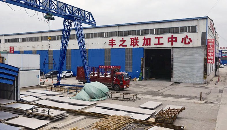 宁彬说,找我写稿子宣传一下,是因为丰之联不锈钢的现货库存和加工设备比较牛逼。库存两千多吨,1000、1220、1500各种厚度齐全的不锈钢冷板,每天进进出出几大车。