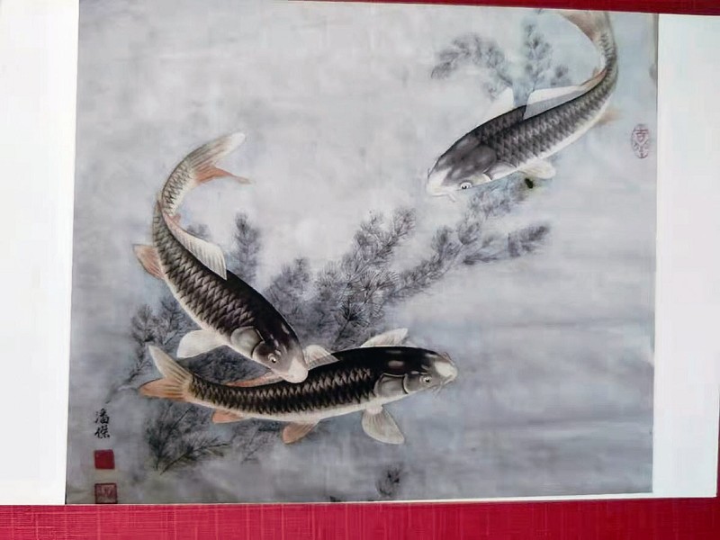 此间,还通过知己介绍结识了画虾老手,人称“虾王”的刘巨波,得以登门拜访求教,有时赶上刘巨波作画,便在他身旁站立,认真观摩,巨波好不保留地讲解提示,从构图、用笔用墨、勾勒渲染及章法布局,细细传授,使他获益匪浅。有时刘巨波到他家中,见他正画画,也直接地从各方面加以指点。这样使潘杰从画虾艺术见地、技法技巧、章法布局、经营位置诸方面都有了长足进步。