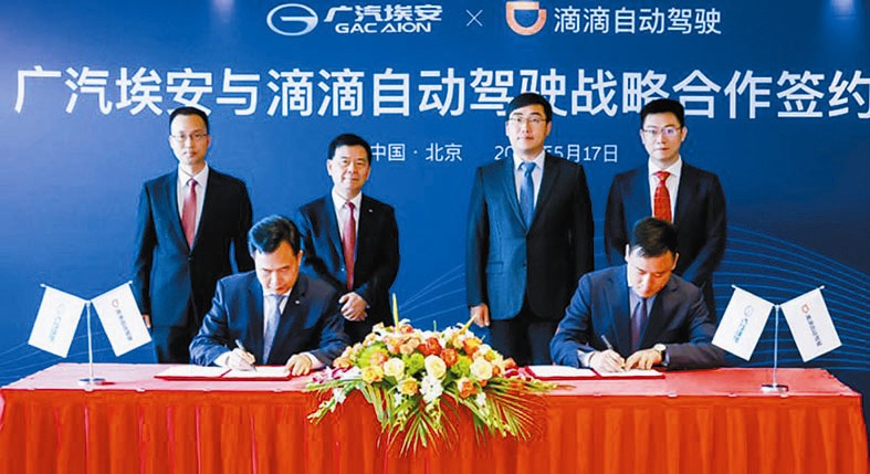 本报讯5月17日,广汽埃安新能源汽车有限公司宣布与滴滴旗下自动驾驶公司达成战略合作,共同研发一款真正前装量产的全无人驾驶车。