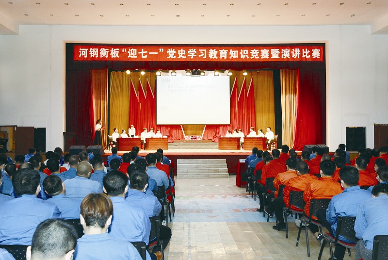 本报讯 为庆祝中国共产党百年华诞,回顾党的光辉历程,营造学党史、知党情、跟党走的浓厚氛围,进一步丰富党史学习教育内容,近日,河钢衡板举办“迎七一”党史学习教育知识竞赛暨演讲比赛,全面激发干部职工的爱党爱国热情和强企之志。参加活动的员工表示,将以此次活动为契机,把党史学习教育成效转化为履职尽责、砥砺奋进的不竭动力,为推动公司市场化改革和高质量发展做出贡献,为建党100周年献礼。(刘玉红 吴艳伟)