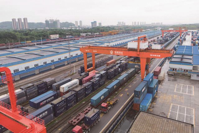 本报讯5月22日,开往明斯克的X8426次中欧班列从长沙北站铁路货场驶出,此趟列车搭载了近千吨来自湖南及周边省份的工程机械配件、纺织品、电子产品等货物。目前,湖南中欧班列已开通至汉堡、布达佩斯、明斯克等十余条线路,物流服务覆盖30个国家,自2014年10月以来,累计发出中欧班列已超过1200列。 (陈思汗摄影报道)