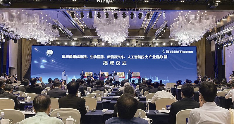 本报讯 5月27日,在江苏无锡举行的第三届长三角一体化发展高层论坛上,长三角集成电路、生物医药、新能源汽车、人工智能四大产业链联盟揭牌,多个重大合作事项签约。 在论坛现场,揭牌的还有长三角科技创新共同体建设办公室、长三角一体化示范区新发展建设有限公司和长三角一体化示范区水乡客厅开发建设有限公司。同时,长三角“一网通办”政务服务地图及高频服务事项启动上线。 (宗合)