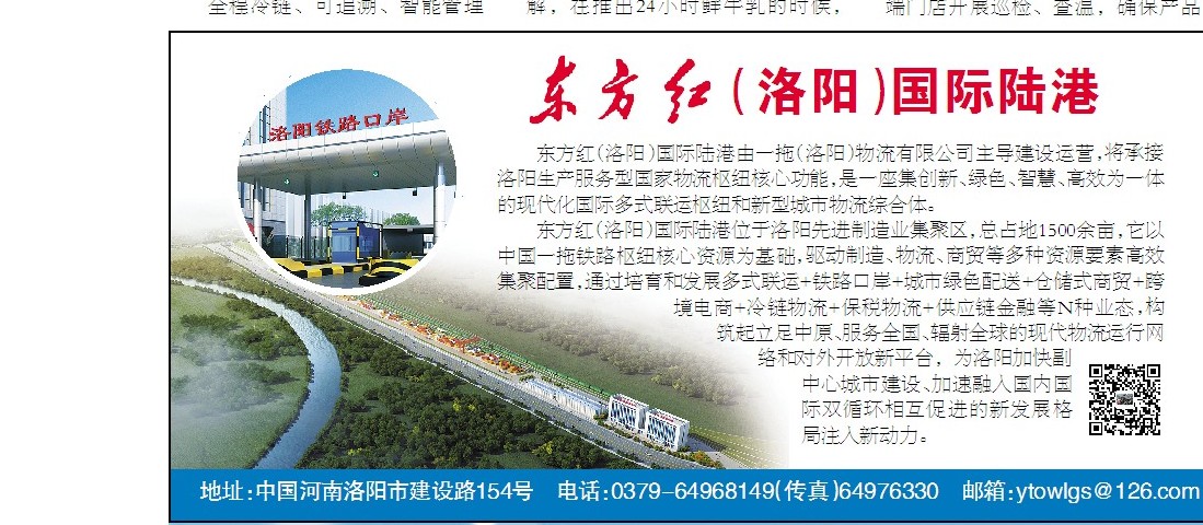 东方红(洛阳)国际陆港由一拖(洛阳)物流有限公司主导建设运营,将承接洛阳生产服务型国家物流枢纽核心功能,是一座集创新、绿色、智慧、高效为一体的现代化国际多式联运枢纽和新型城市物流综合体。