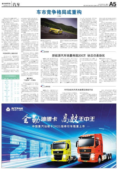 ■ 新能源汽车销量将超200万 缺芯仍是隐忧