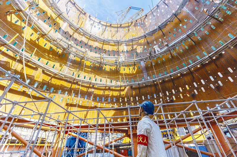 本报讯 上海宝冶集团有限公司承建的马钢A高炉大修项目在安全管理工作上牢固树立安全红线意识,认真落实安全管理各项措施,结合高炉大修不同时段实际,不断探索立体交叉作业多、安全管理难度大的实际,严守安全底线,为施工生产保驾护航,推动各项活动取得实效,确保施工有序平稳安全。 图为炉壳焊接时,现场人员进行安全监护。 (王汉强 汤飞)